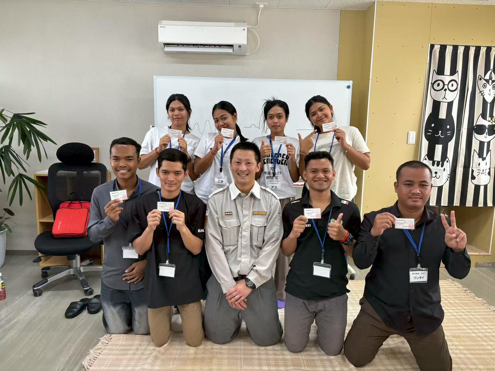 8月4日(月)、カンボジア出身4名・インドネシア出身4名、計8名の実習生が、3時間の救命講習を受講しました。